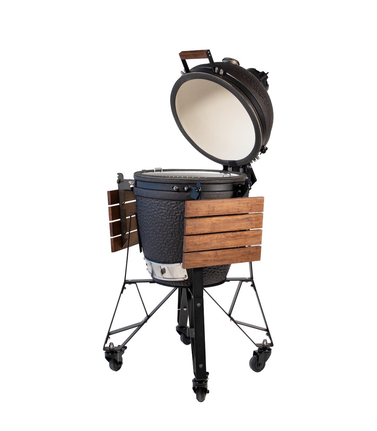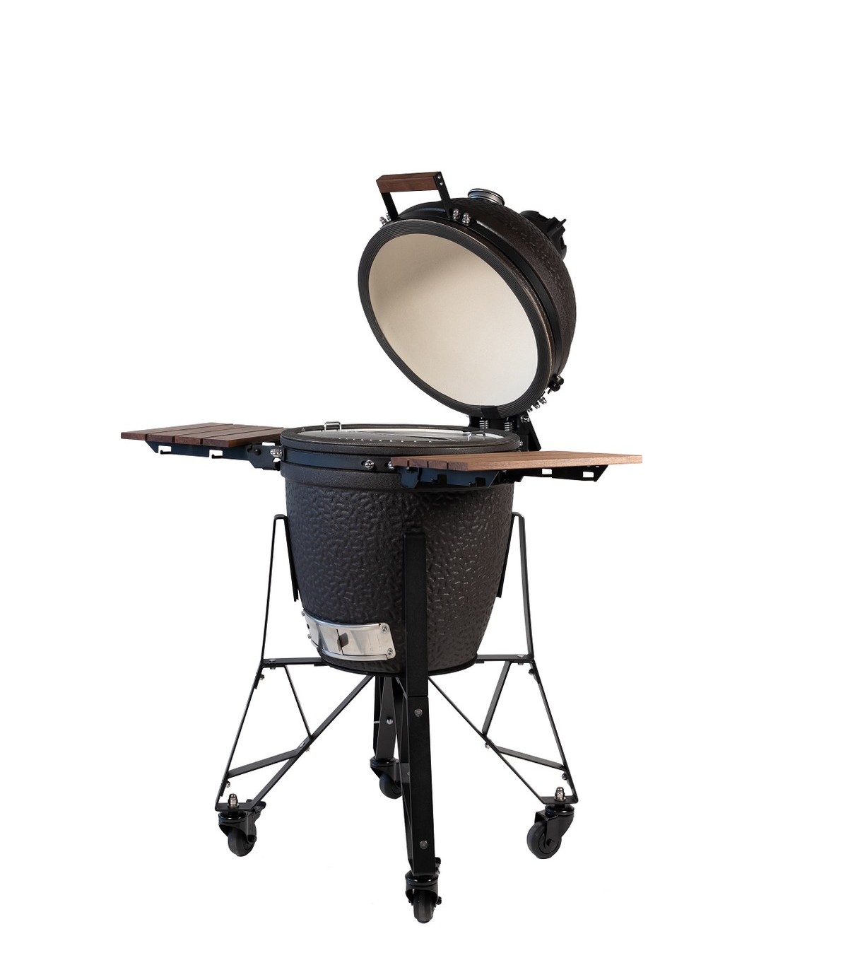 *Keraamiline grill Bastard Urban Medium Complete - 42 cm läbimõõduga uus mudel on veelgi parem ja täiuslikum kamado tüüpi grill. Grill sobib ideaalselt kasutamiseks aias ja terrassidel - grilli, suitsuta, rösti ja küpseta! Bastard Urban Medium Complete on ainulaadne oma mati musta värvilahenduse tõttu. Valmistatud eriti kuumakindlast keraamikast ja roostevabast terasest. Grilli paksude seintega keraamiline korpus lukustab endasse kuumuse, niiskuse ja maitsed. Soojusdeflektori plaat võimaldab küpsetada kaudse kuumusega, et muuta küpsetusprotsess veelgi paindlikumaks. Puidust käepidemed ja kokkupandavad küljelauad on mugavad ja ergonoomilised. Tänu ratastele on grilli lihtne liigutada.