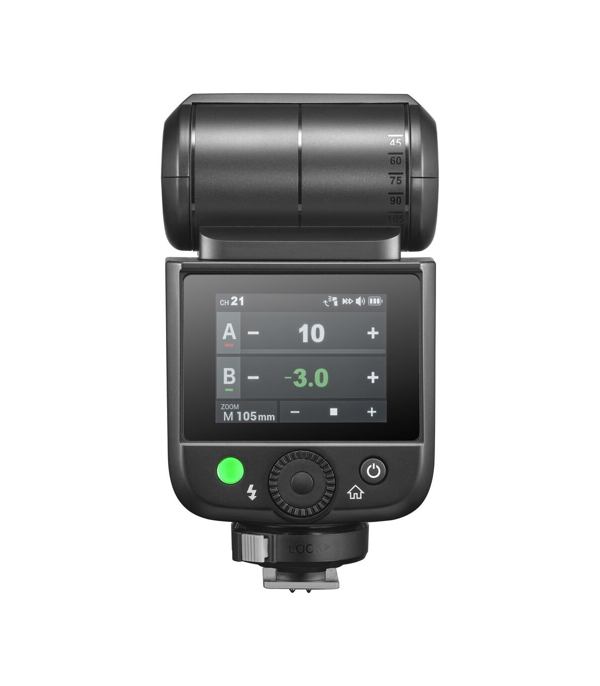 Ekraan kuvab reaalajas efektiivse välgu ulatuse, nii tead alati, kas subjekt on optimaalses kauguses. Ideaalne kitsastes ruumides, peegeldava valguse kasutamisel või kiiretel üritustel.