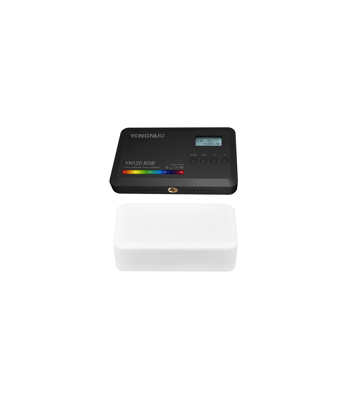 Yongnuo YN120 RGB LED-valgusti on kompaktne valgusallikas, mis sobib suurepäraselt liikuvale fotograafile ja videoloojale. LED-valgusti mitmekülgsus võimaldab tõhusalt parandada tootefotode, lähivõtete, portreede, vlogide, intervjuude ja veebiseminaride kvaliteeti peaaegu igas keskkonnas. Valgusti pakub laias valikus valguse värvitemperatuuri reguleerimist (2500–9900 K), võimalust muuta värvi HSV-värvimudelis ning sel on 31 eelseadistatud eriefekti. Kaasas on ka silikoonhajuti, mis pehmendab valgust ühtlaselt.