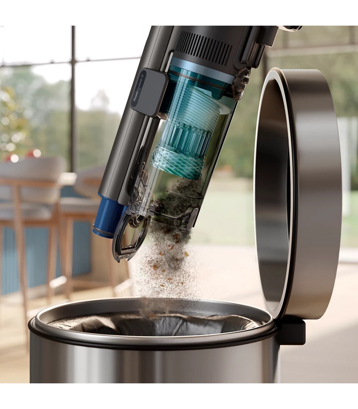 * Tolmuimeja- ja mopiotsak paindub, et reguleerida imemisvõimsust automaatselt ja nutikalt seal, kus on vaja suuremat jõudlust, kasutades kahte imikanalit – ühte esiküljel ja teist taga