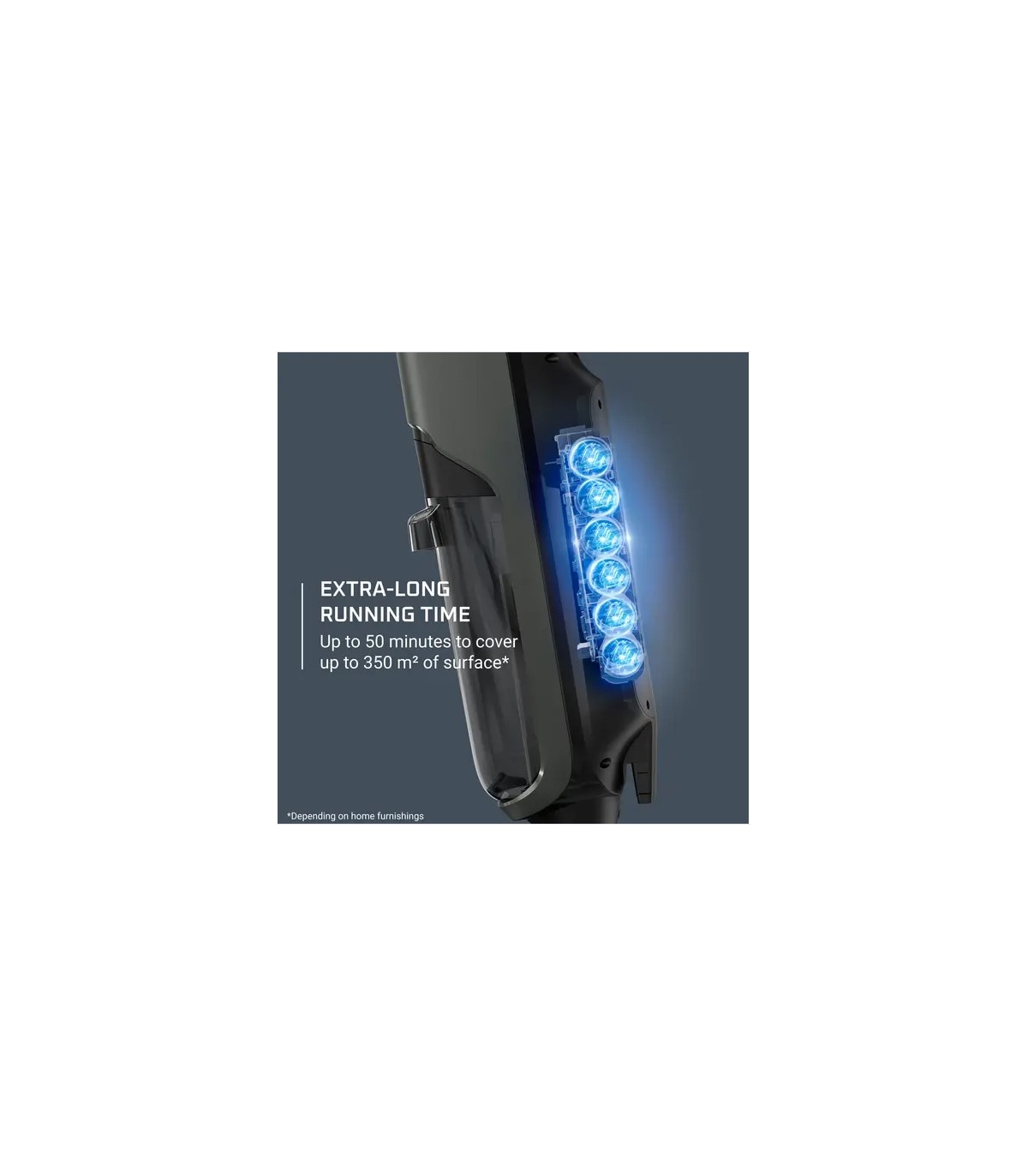 * Võimsus 200W, max tööaeg 50 min, laadimisaeg 3,5 h, 350m2, 16000 Pa