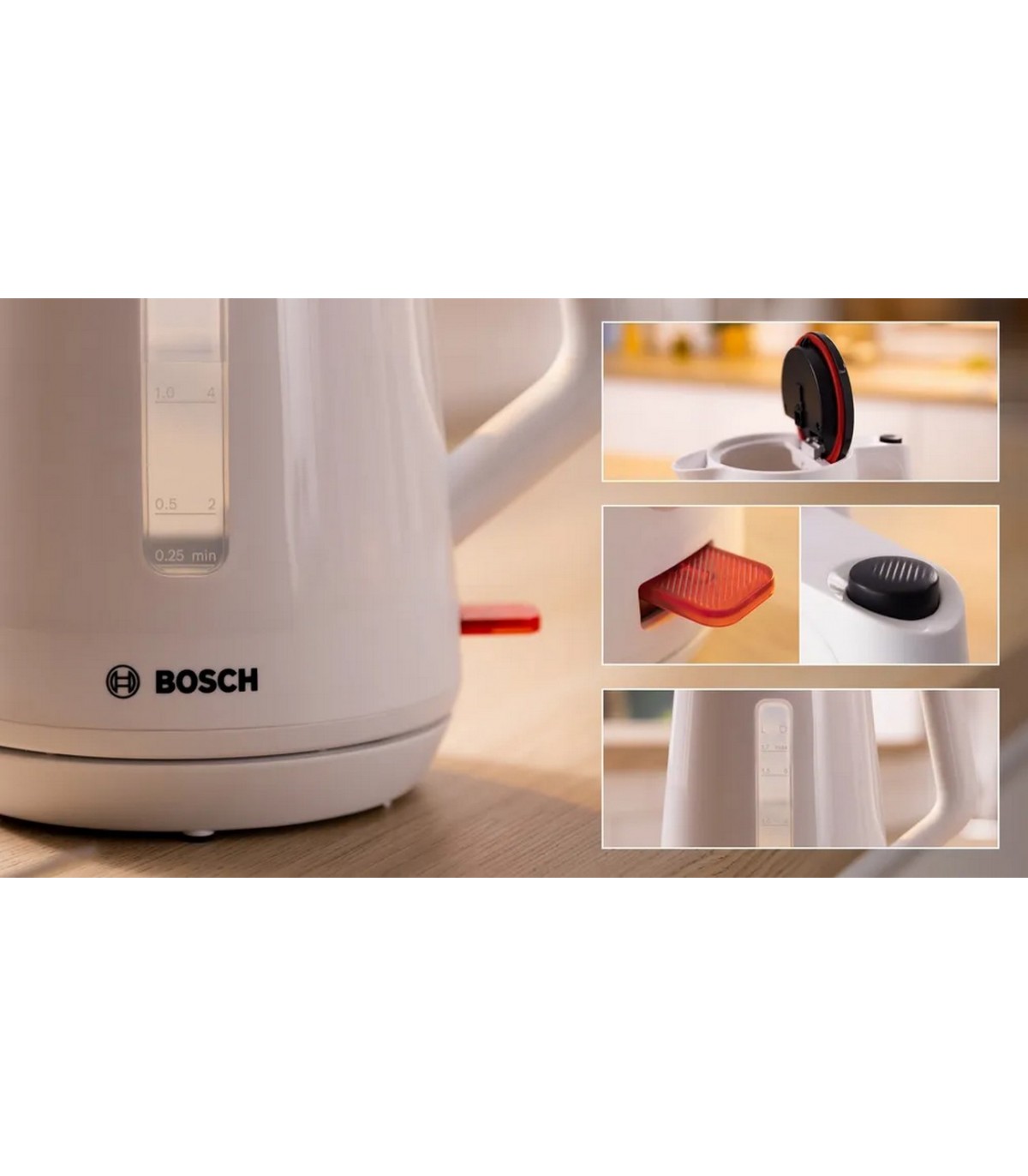 - Kolmekordne ohutus – automaatne väljalülitamine, ülekuumenemise ja kuivalt keetmise kaitse ning väljalülitamine kannu tõstmisel. Katlakivifilter, tassinäidik, ergonoomiline kasutamine