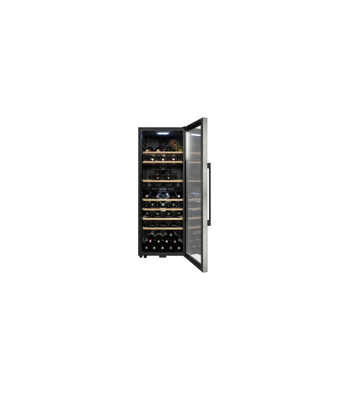 - Kahetsooniga veinikülmik, ühildatav Vinotag® äpiga, talvesüsteem, elektrooniline termostaat, õhuniiskus reguleeritud 60-80% vahemikus