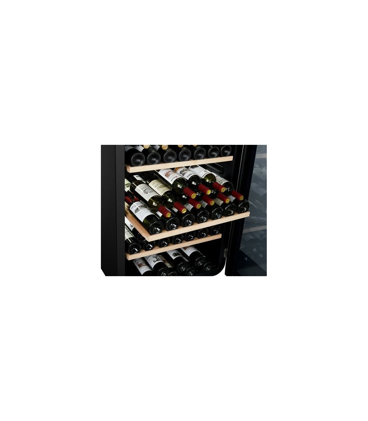 6 puidust riiulit on eemaldatavad ja need on mitmes suuruses, mis kohanduvad teie vajadustega (4 riiulit pea vastas + 2 riiulit horisontaalasendis) mahutada mitut tüüpi (Alsatian, Burgundia, Champenoise) pudeleid.