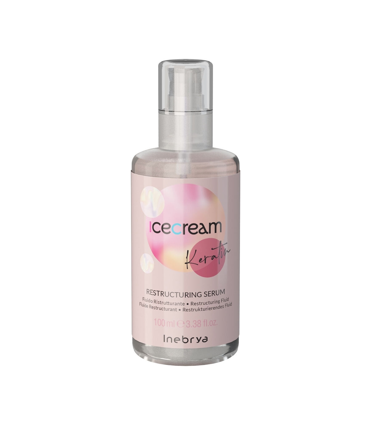 Inebrya Ice Cream Keratin Restructuring Serum erilisse Ice Cream hooldustoodete sarja kuuluv taastava efektiga juukseseerum, milles sisalduvad valgud koos sünergilise infusiooniga annavad ekstreemselt kuivadele juustele tugevust, struktuuri, ilu ja niisutust. Ideaalne hooldustoode kahjustatud, rabedatele ja kahustele juustele, mis on altid murduma, ning on sageli allutatud keemilisele töötlemisele, nagu sirgendamine, pleegitamine, blondeerimine ja värvimine. Seerum sobib ideaalselt kuivadele, kahustele ja töödeldud juustele, ümbritsedes juuksekarvakese efektiivse niiskus- ja kahuvastase kaitsekilega. Ei sisalda sulfaate! Kasutamine: kanna paar tilka toodet märgadele või kuivadele juustele. Ei ole vaja loputada.