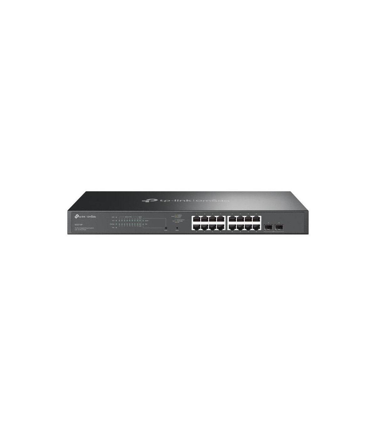 - TP-Link Omada 18-Port Gigabit Smart Switch with 16-Port PoE+. Switch type: Managed, Switch layer: L2/L2+. Basic switching RJ-45 Ethernet ports type: Gigabit Ethernet (10/100/1000), Basic switching RJ-45 Ethernet ports quantity: 16. MAC address table: 8000