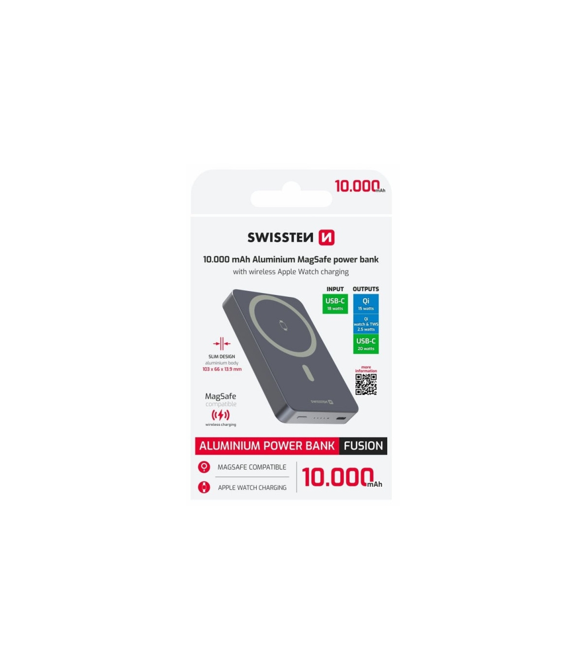 *väljund USB-C(20W max)/ MagSafe juhtmevaba laadimine kuni 15W+Apple Watch laadimine 2,5W