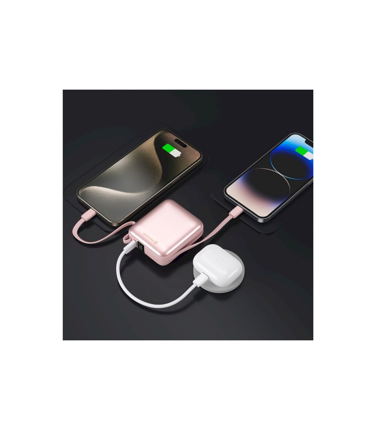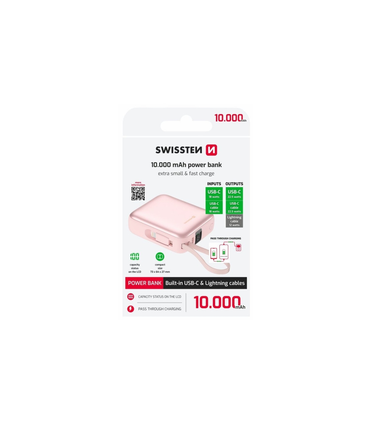 *Sisseehitatud kaablid USB-C(sisend/väljund) ja Lightning(väljund)