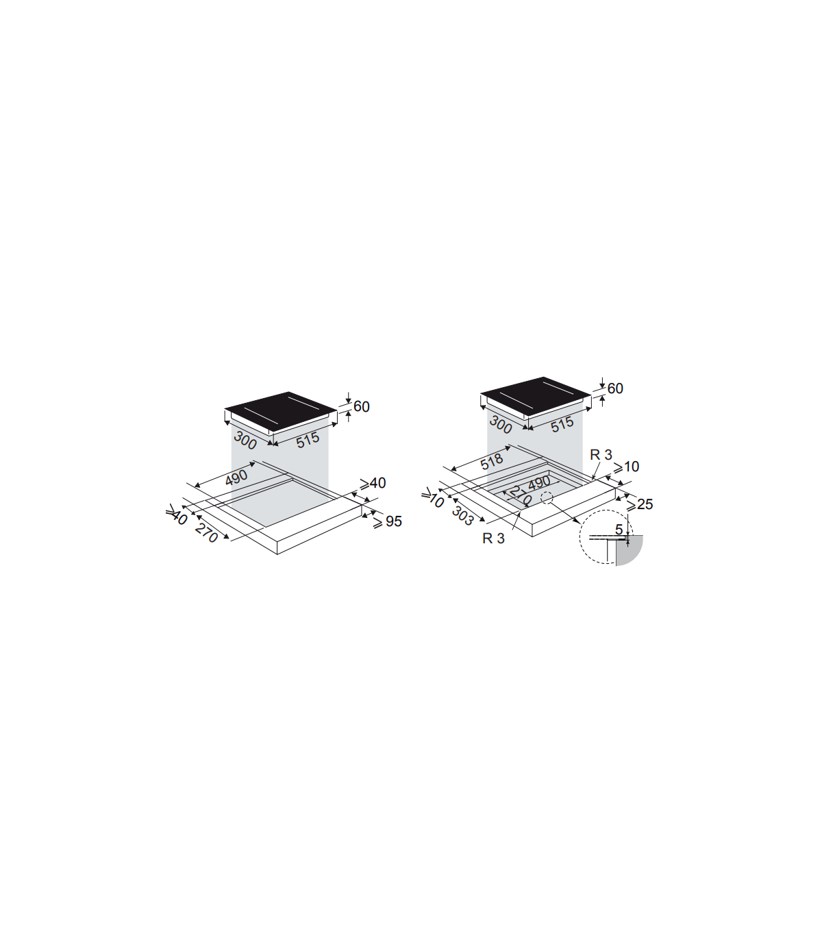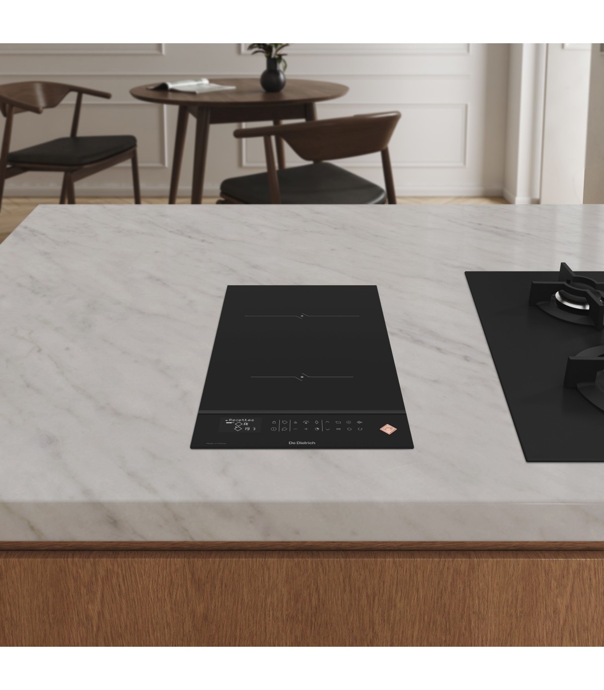 The front edge of the hob has a carbon black slat.