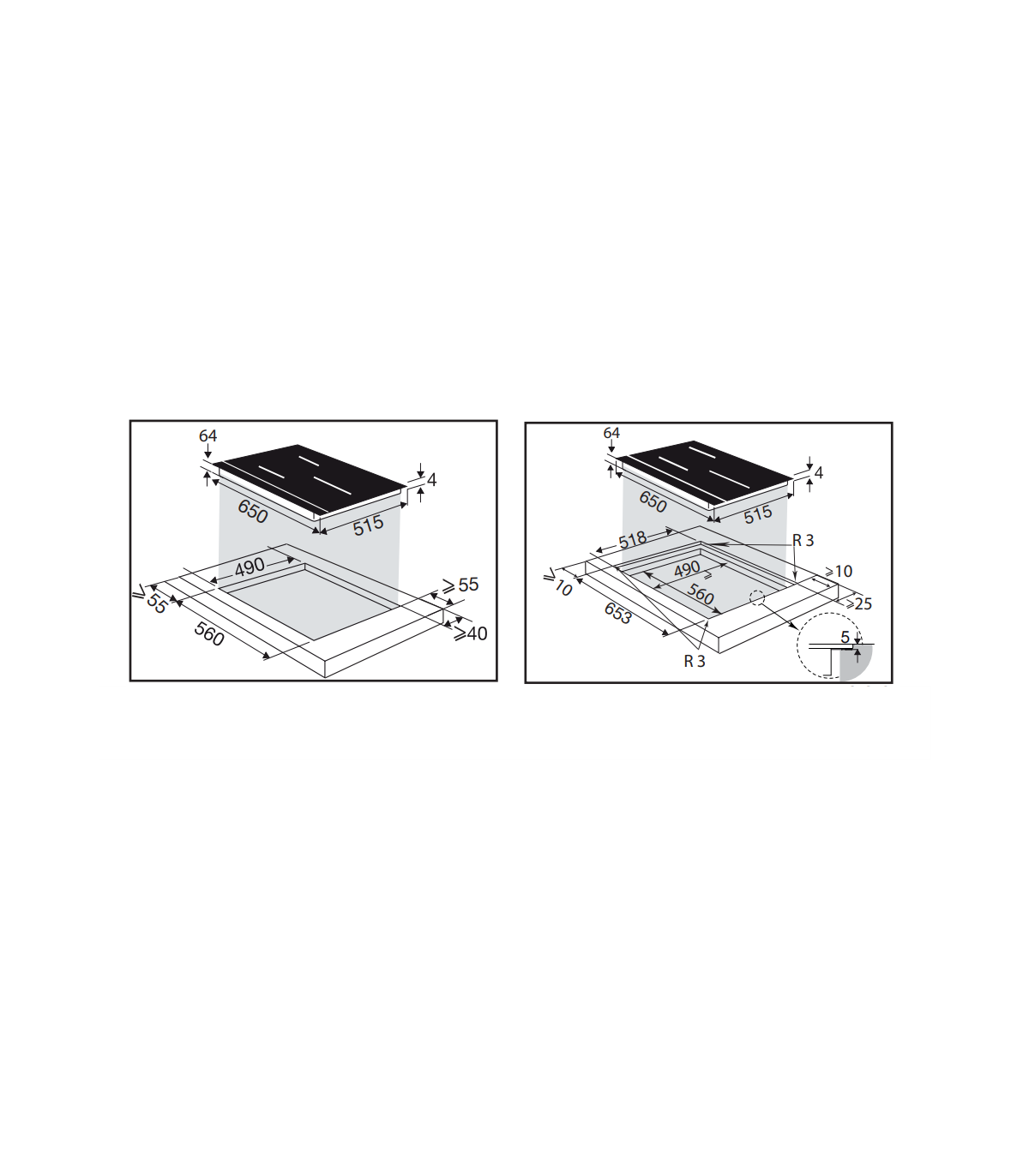 The front edge of the hob has a carbon black slat.