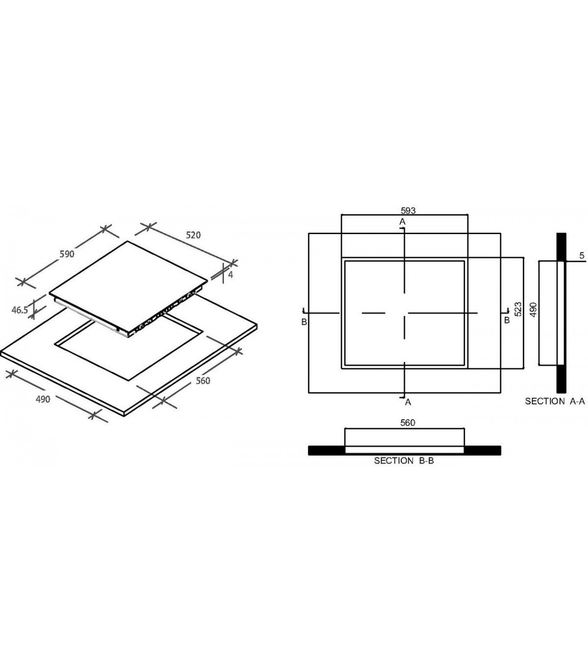 * Mõõdud. 40 x 590 x 520 mm ( k/ l/ s )