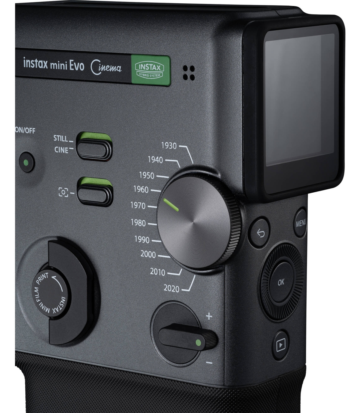 instax mini Evo Cinema eristub oma Eras Dial efektikettaga, mis pakub 10 erinevat ajastut ning iga ajastu jaoks 10 tugevusastet. Kokku on võimalik luua 100 erinevat visuaalset efekti. Iga efektiga kaasneb ajastule iseloomulik raam, mis lisab fotodele ja videotele isikupära ja filmiliku meeleolu.