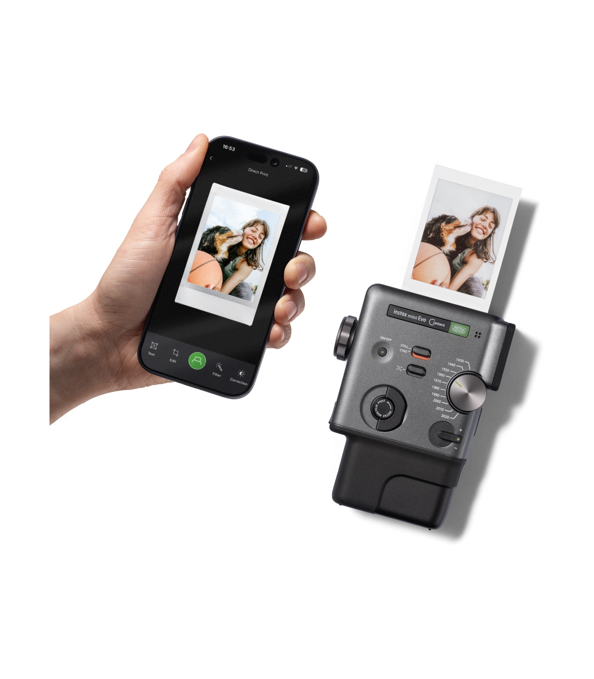 instax mini Evo Cinema võimaldab printida kvaliteetseid fotosid instax mini filmile ning lisada prinditud piltidele QR-koodi, mille kaudu saab vastavat videot nutitelefonis vaadata. See loob unikaalse viisi siduda füüsiline foto digitaalse mälestusega.