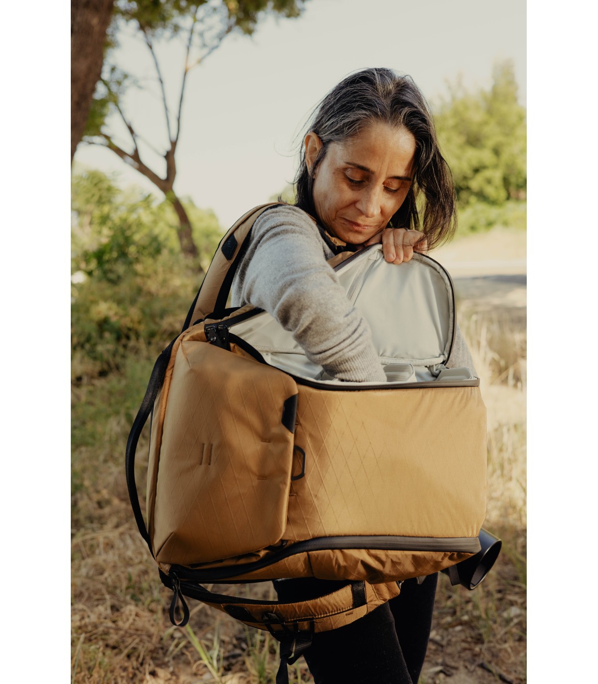 Mugavust silmas pidades on kott varustatud ventileeritava, kiiresti kuivava võrgust seljapolstriga ja õlarihmadega, mis pöörlevad aksiaalsetes punktides, et optimeerida sobivust kõikidele kehatüüpidele. Täiendavad kandmisvõimalused hõlmavad kiirelt ühendatavat, kokkupandavat rinnakurihma, pagasi läbipääsu turvaliseks kohvril kandmiseks ja kolme polsterdatud käepidet püstises või portfelli stiilis käes kandmiseks.