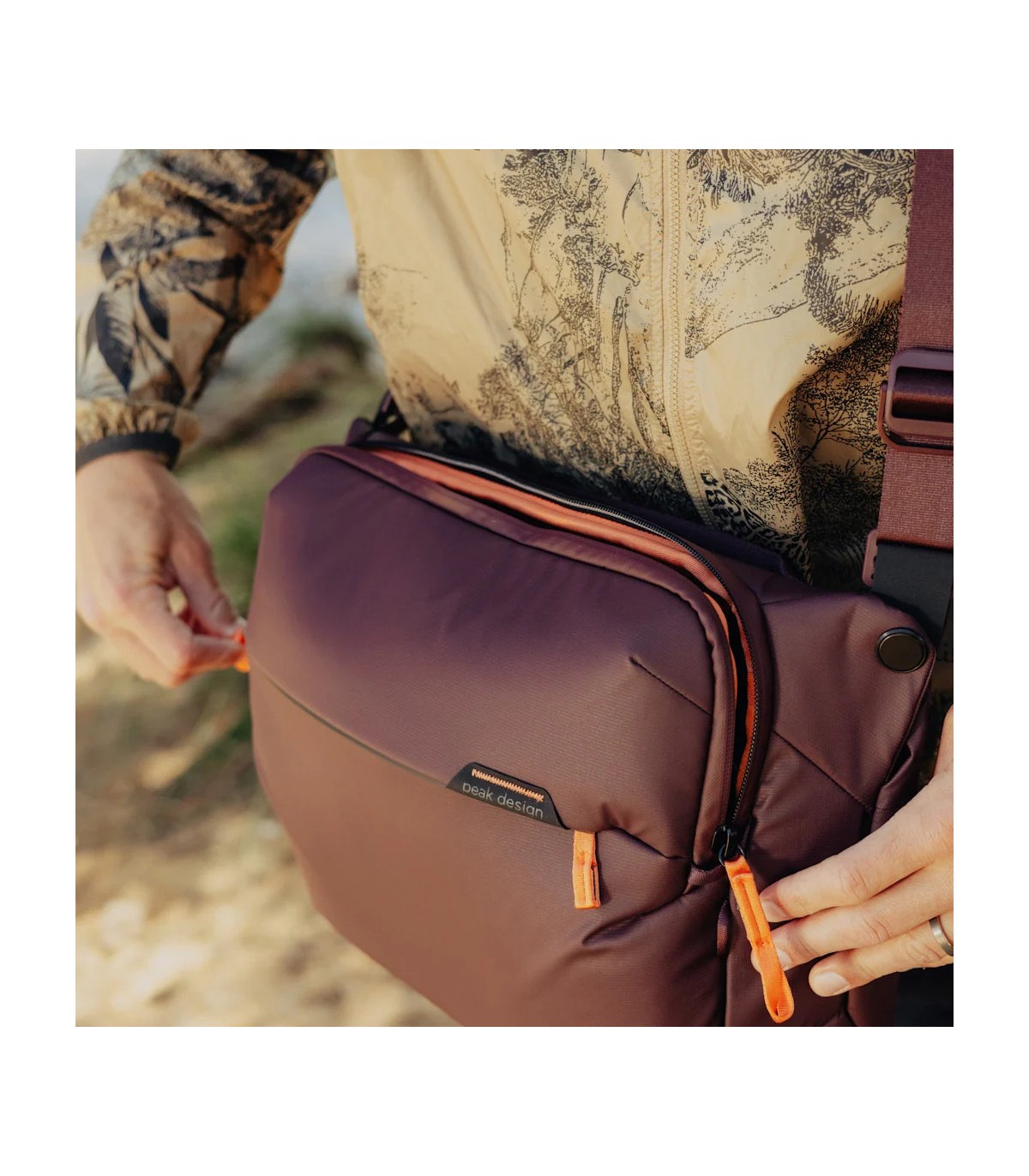 Peak Design Everyday Sling on loodud kohanemisvõimet silmas pidades. Sellel on reguleeritav polsterdatud õlarihm mugavaks käed-vabad kandmiseks, mida saab reguleerida nii vasaku kui ka parema õla jaoks. Lisaks saab turvalisuse ja mugavuse suurendamiseks kanda ümber rinna või vöökoha stabiliseerivat rihma.