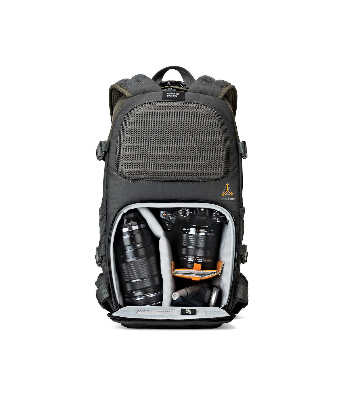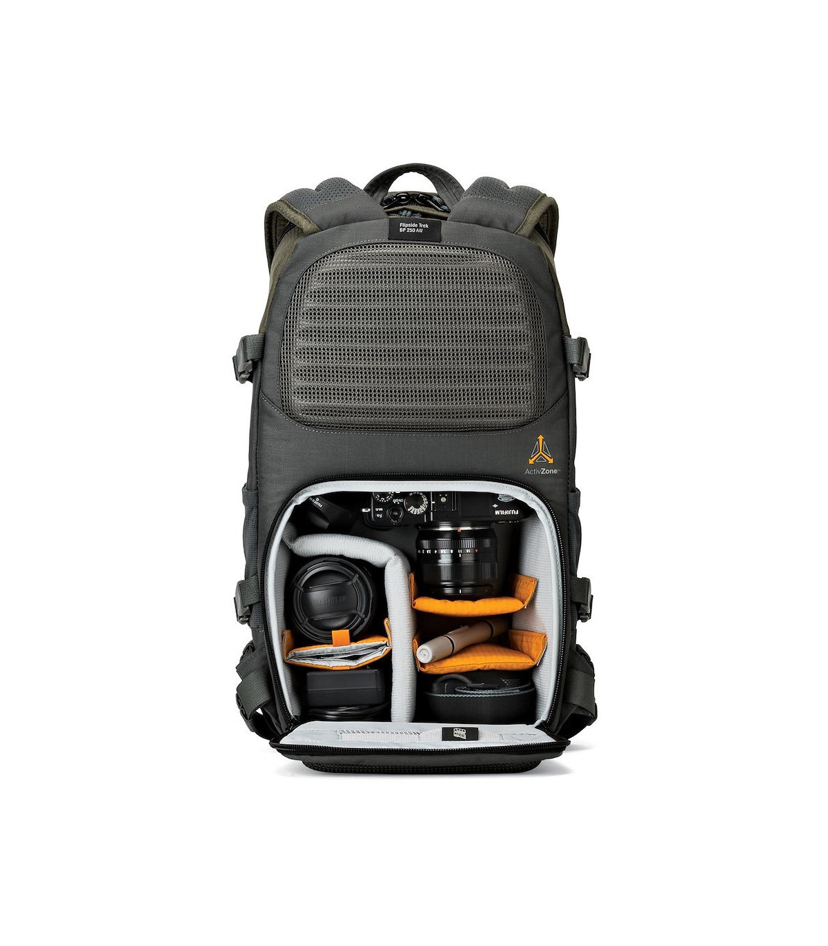 Flipside Trek mahutab vajaliku fotovarustuse – hübriidkaamera objektiiviga ja kuni kaks lisaobjektiivi. Lisaks on kotis piisavalt ruumi seiklemiseks loodud tarvikutele ning isiklikele esemetele. Kotis on ka eraldi sahtel kuni 8-tollisele tahvelarvutile. Koti külge saab mugavalt kinnitada näiteks statiivi, matkakepid, päikesepatarei või veepudelid.