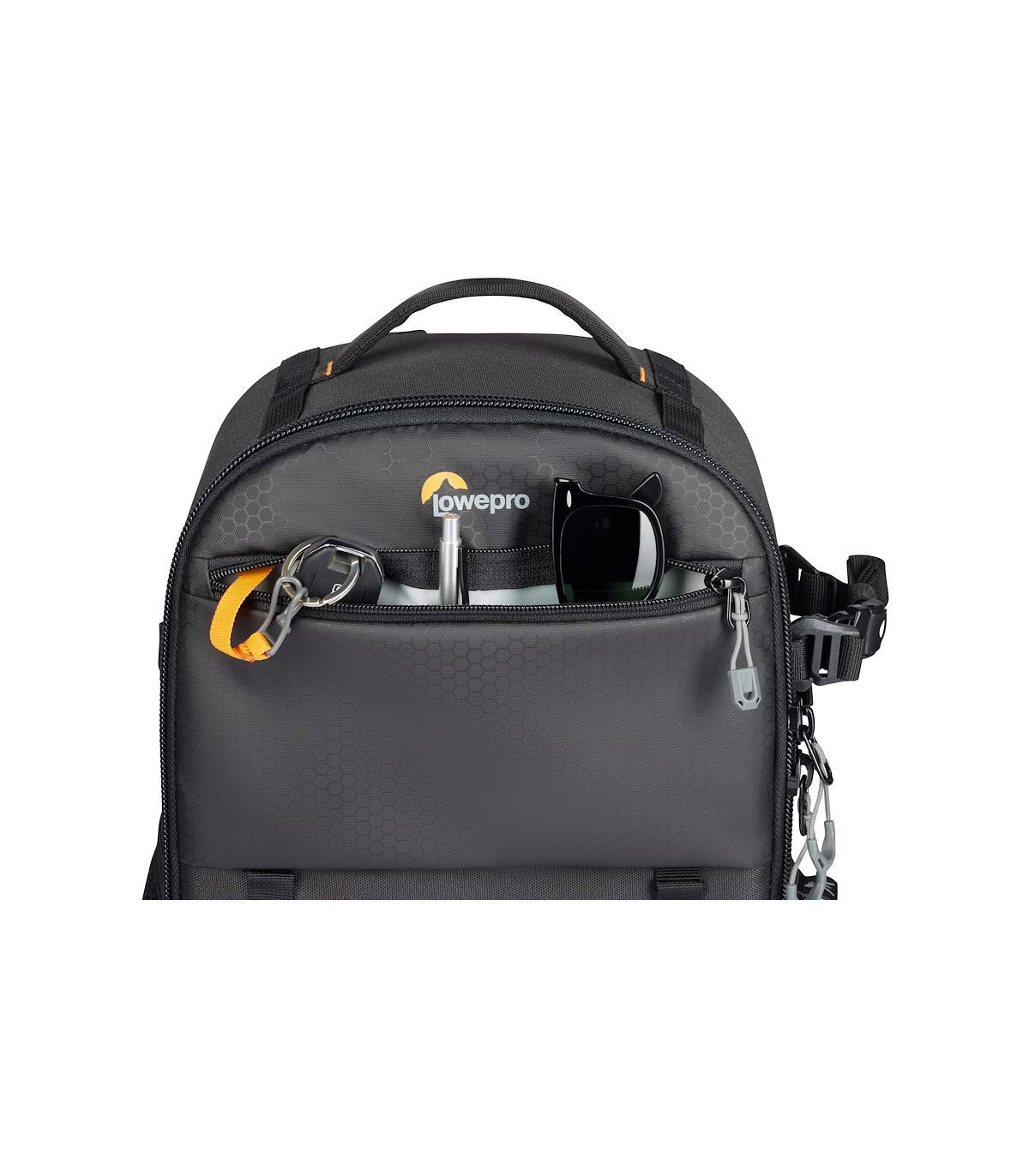 - Kaks küljetaskut näiteks veepudeli ja kompaktse statiivi jaoks