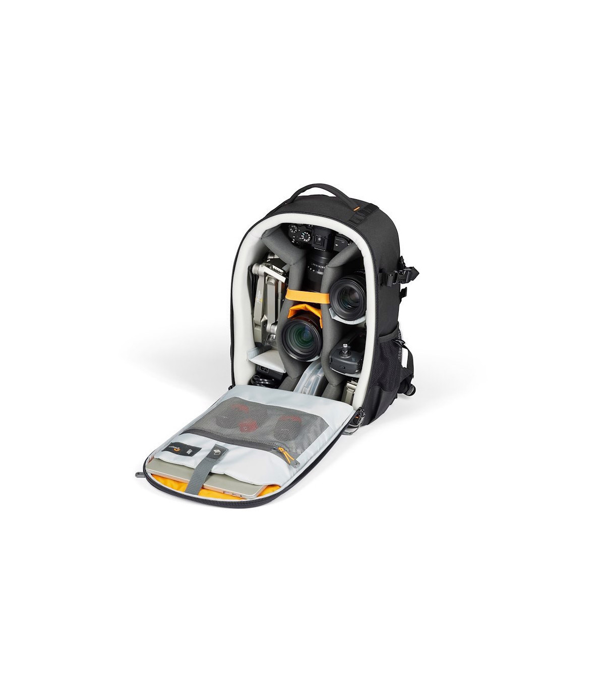 See suur kaamerakott mahutab täiskaader hübriidkaamera, näiteks Sony Alpha 7, 8, 9 seeria, kuni viie objektiiviga. Või hoopis DJI Mavic Pro 2 drooni. Kotil on ka eraldi tasku 13-tollise sülearvuti jaoks ning saad kompaktse statiivigi endaga mugavalt kaasa võtta. Lisaks on kotil kaks praktilist küljetaskut.