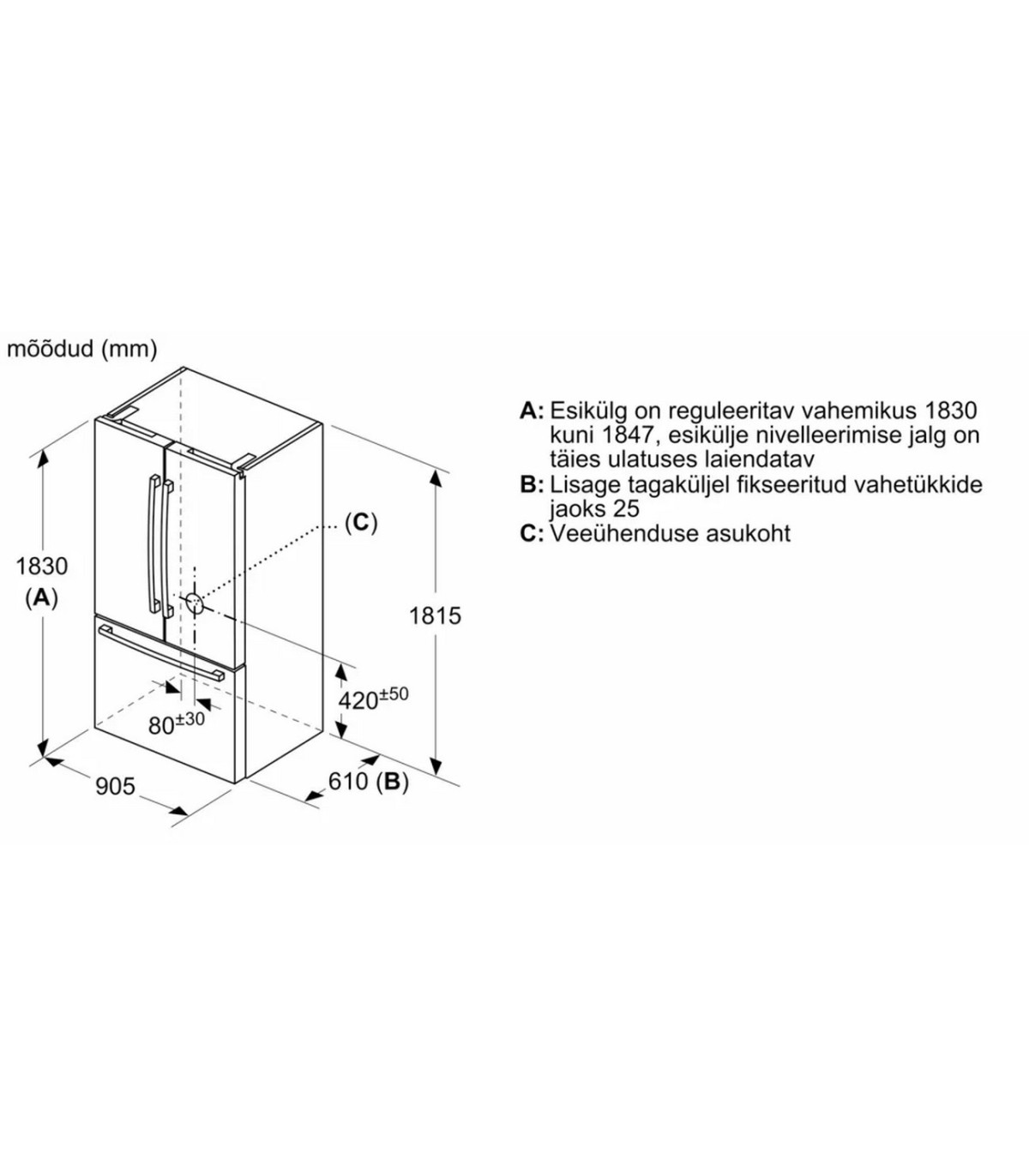 - Sügavkülmkambri maht, neto (l)