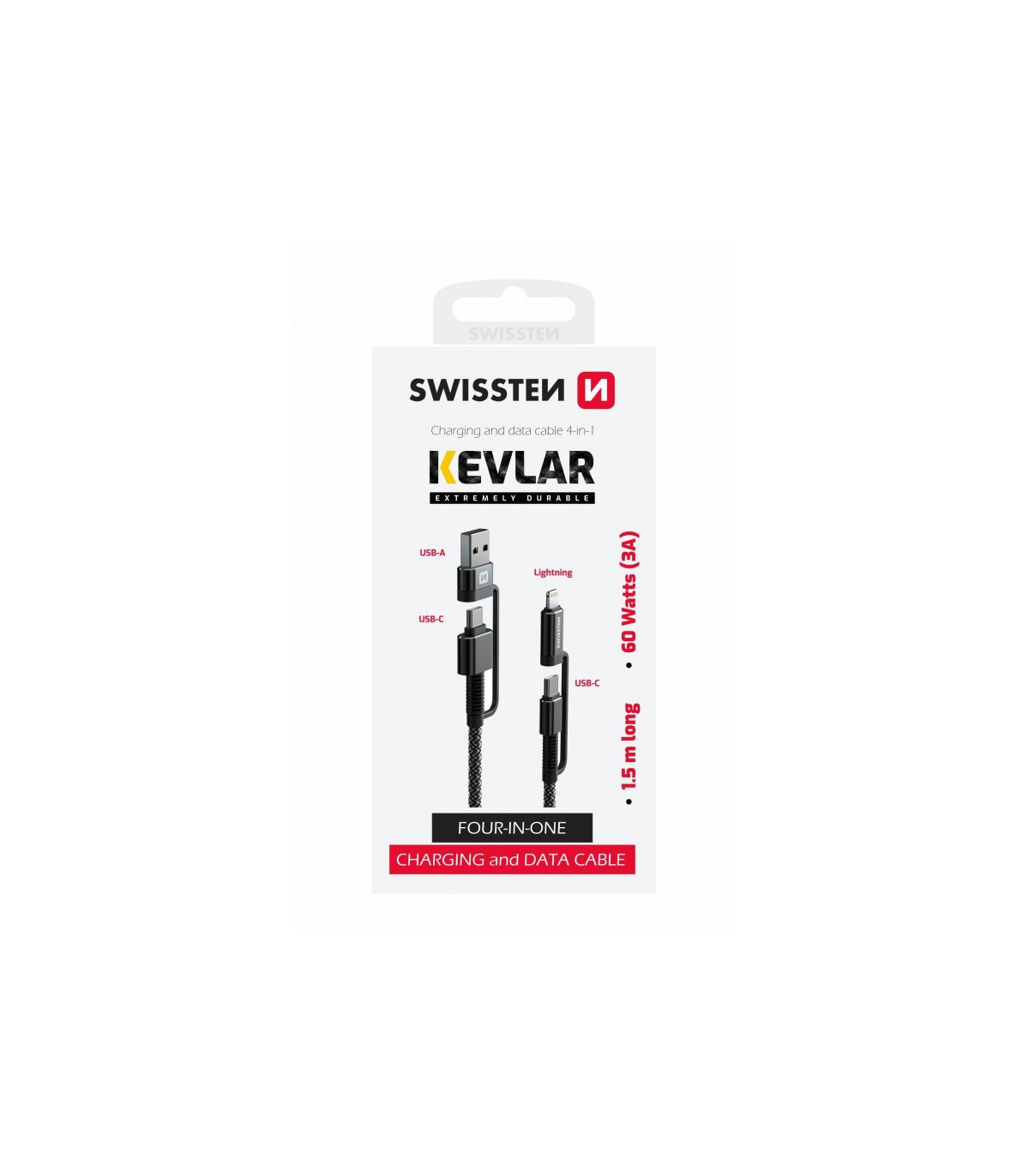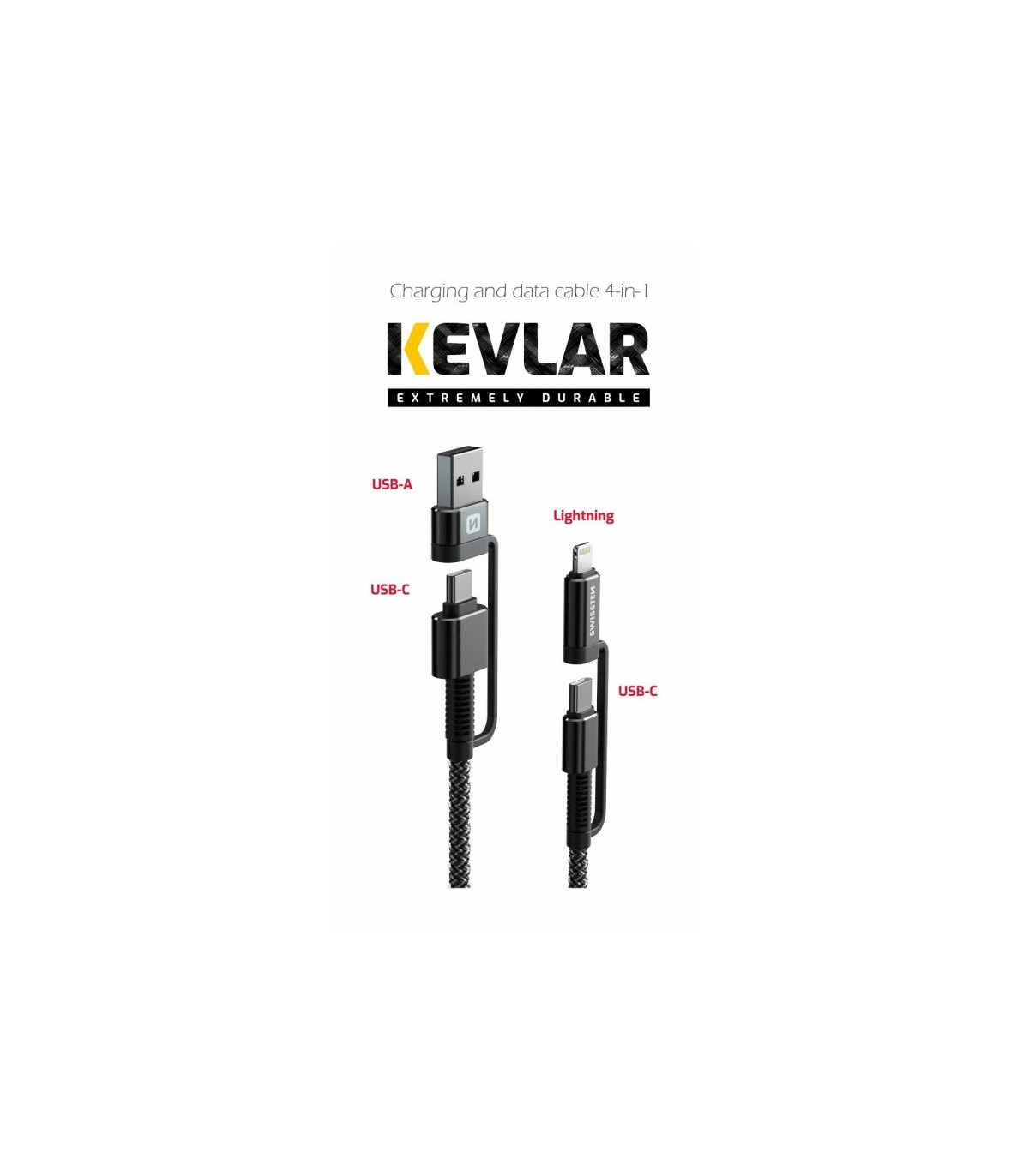 * Kombineeritud tugevdatud kaabel 4in1, 3A/ 60W