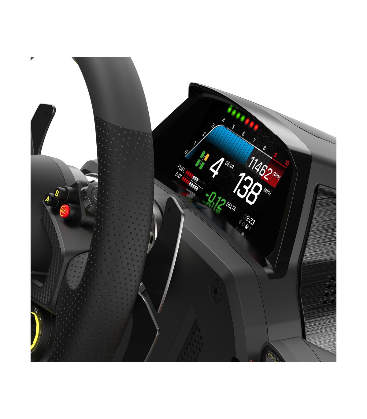 Saad kasutada ka Tuner rakendust juhtnuppude ümberseadmistamiseks ja jõudluse kohandamiseks. VelocityOne™ Race on varustatud Mag-Shift™ käiguvahetite, käsitsi õmmeldud nahkrooli, alumiiniumist pedaalide ja võidusõidust inspireeritud juhtnuppudega.