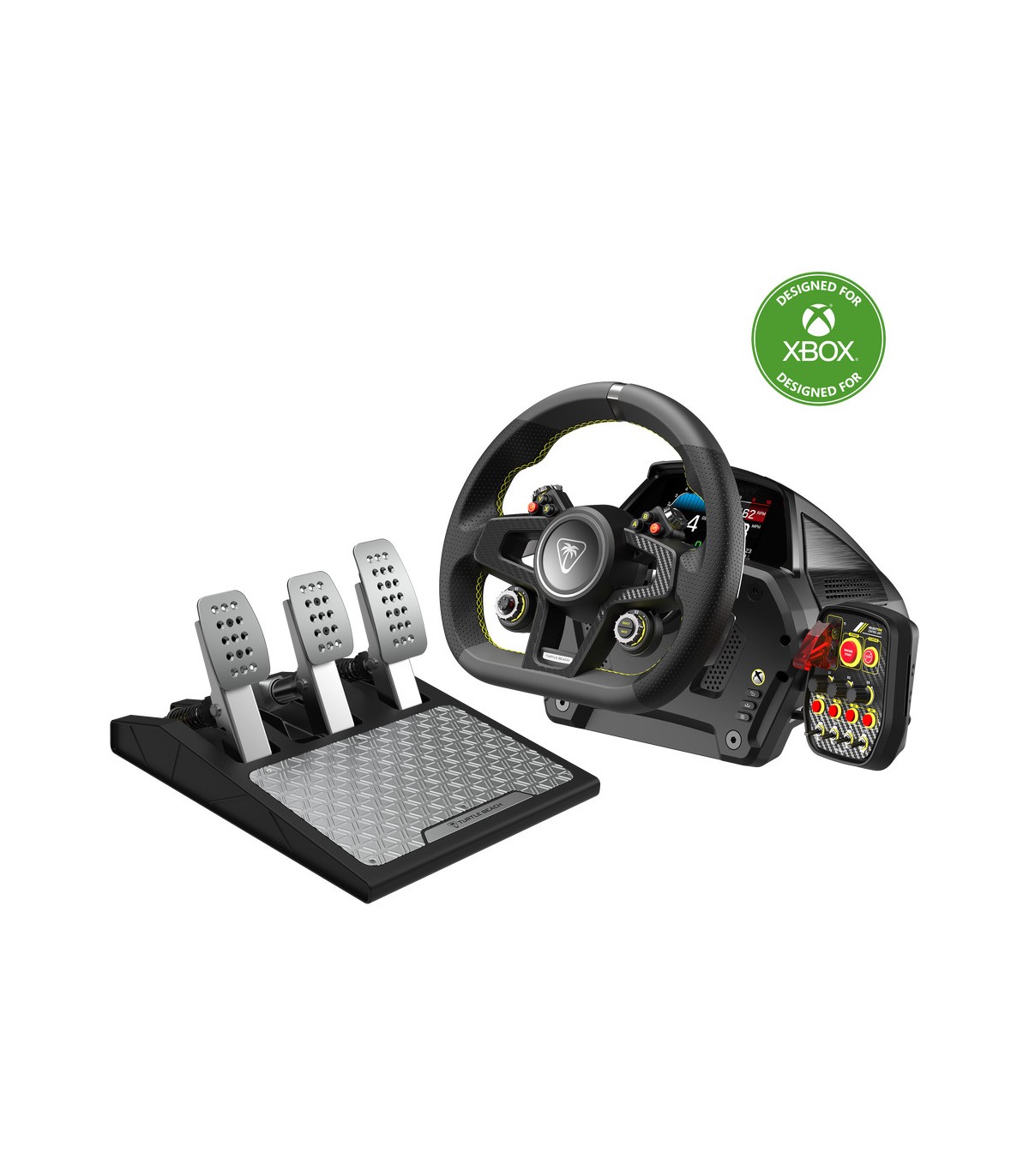 Turtle Beach VelocityOne Race Wheel & Pedal System viib võidusõidumängud uuele realismi tasemele. See komplekt on loodud Xbox konsoolidele ja Windows arvutitele.