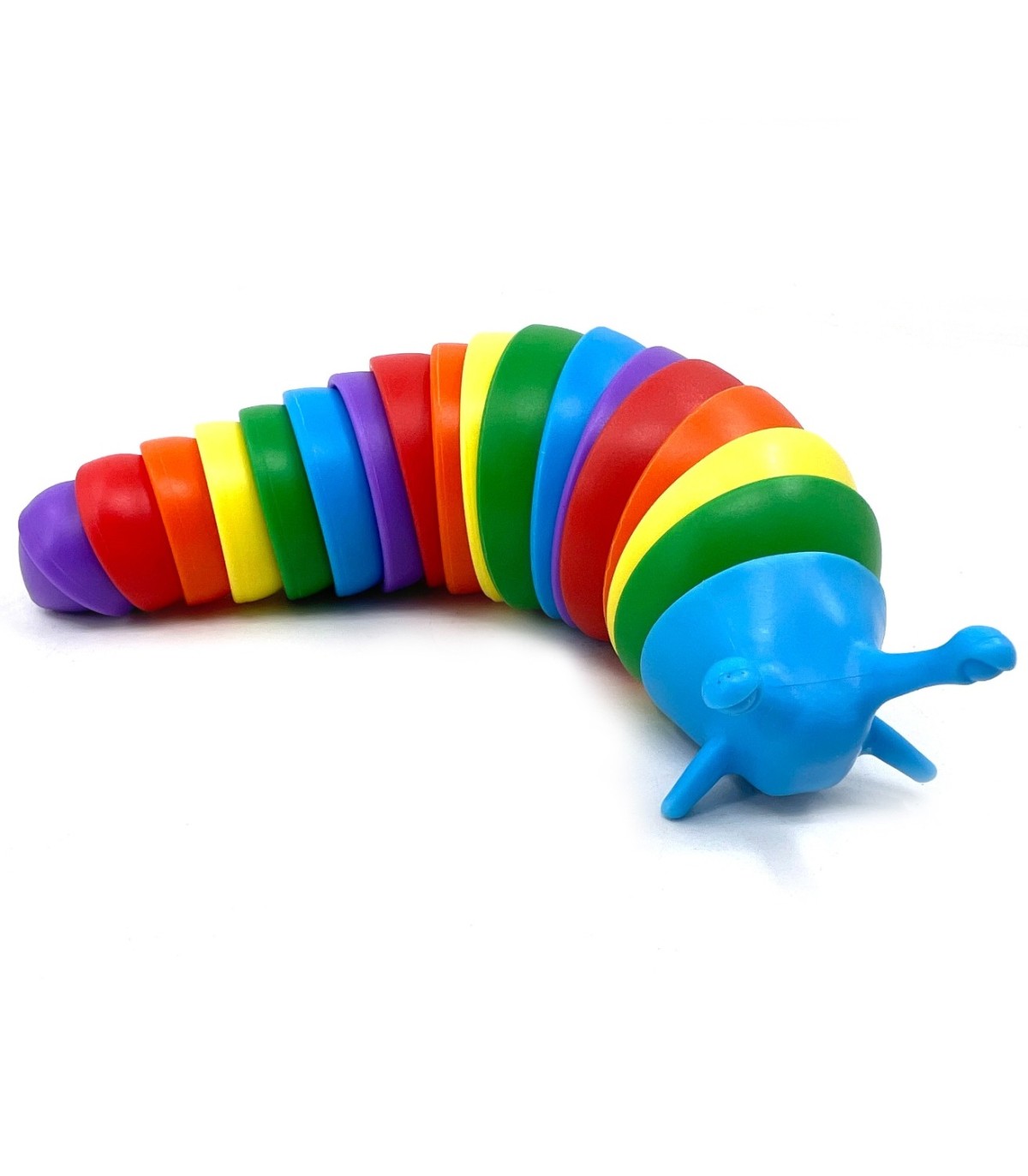 Painduv vikerkaarevärviline nälkjas. Näppude vahel vingerdav nälkjas on rahustav, leevendab stressi, parandab motoorseid oskusi, 360° pööratav. Mänguasi on BPA vabast plastikust. Fidget Slug nälkja paindlikkus on loodud 3D liigendatud disainiga.