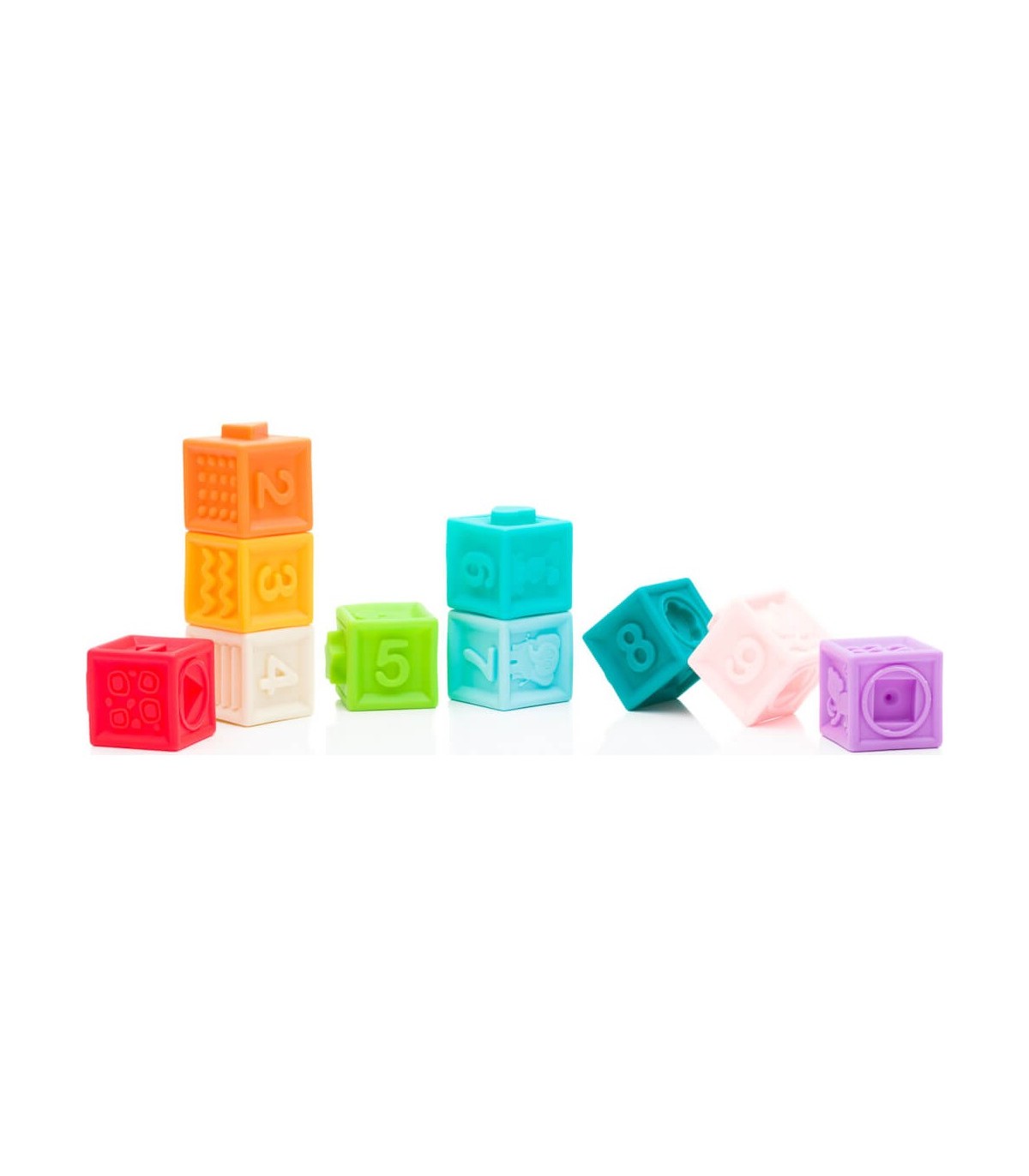Lõbusad pehmed klotsid väikesele maailmaavastajale. Klotside erinevate pindade ja värvide kaudu toetavad need lapse sensoorset taju ning motoorika arengut. Lisaks annavad võimaluse tutvustada lapsele põhi värve ning numbreid ja loomi. Klotside spetsiaalsed augud võimaldavad neid üksteise külge kokku suruda. Komplektis 10 klotsi.