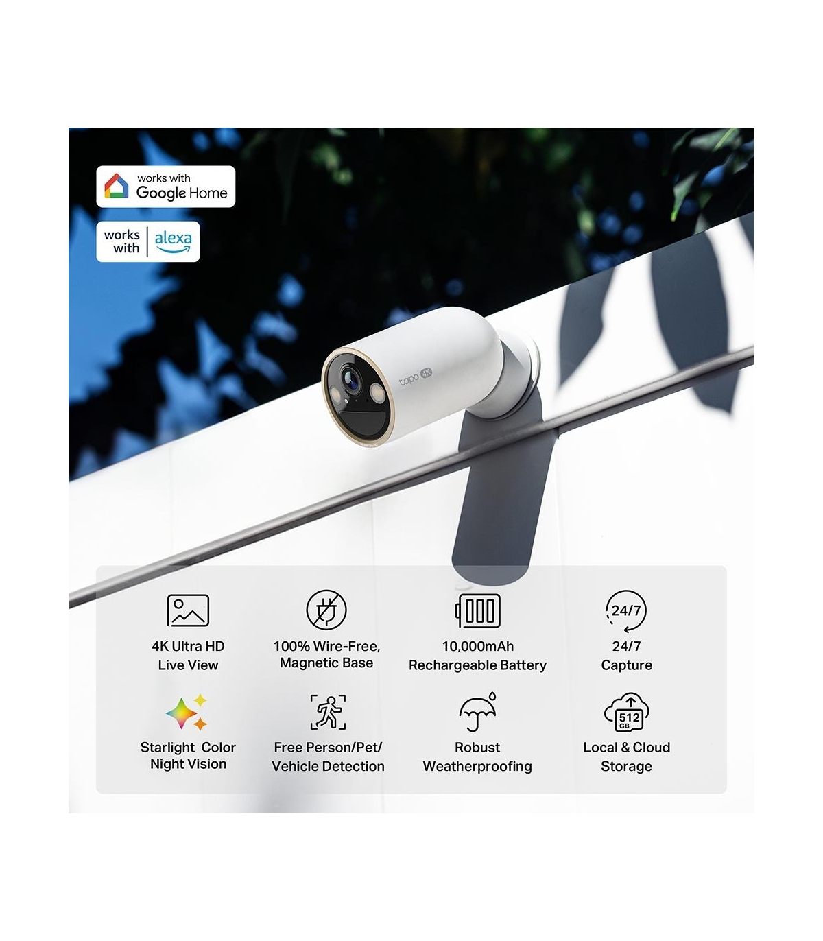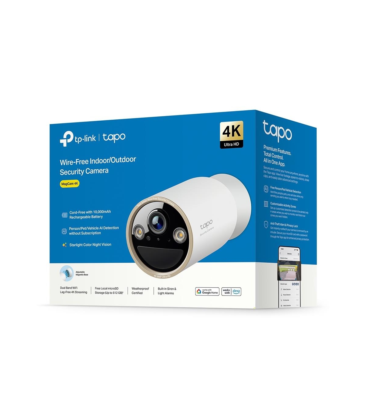 - TP-Link Tapo Wire-Free Indoor/Outdoor Security Camera SPEC:4K UHD (3840x2160), H.265/H.264 Supported, 16x UHD Digital Zoom, 2.4/5 GHz Dual Band Wi-Fi, 10000mAh Rechargeable Lithium-ion Battery. Type: IP security camera, Placement supported: Outdoor, Conne