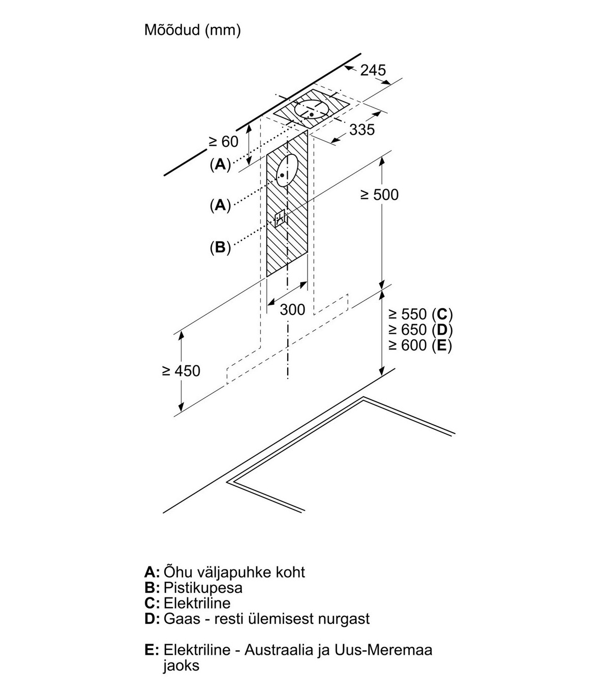 - Соединение между варочной панелью и вытяжкой