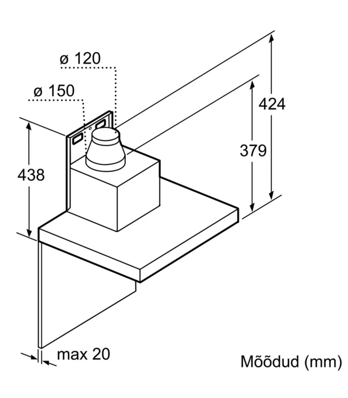 * Ventilatsioonitoru läbimõõt: 120/150 mm