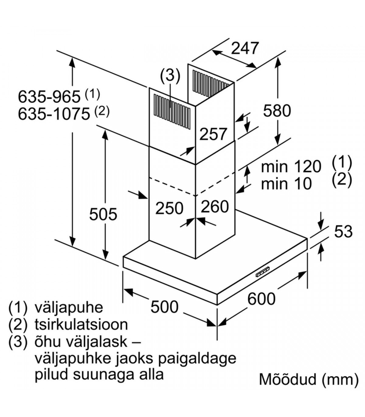 * Ventilatsioonitoru läbimõõt: 120/150 mm