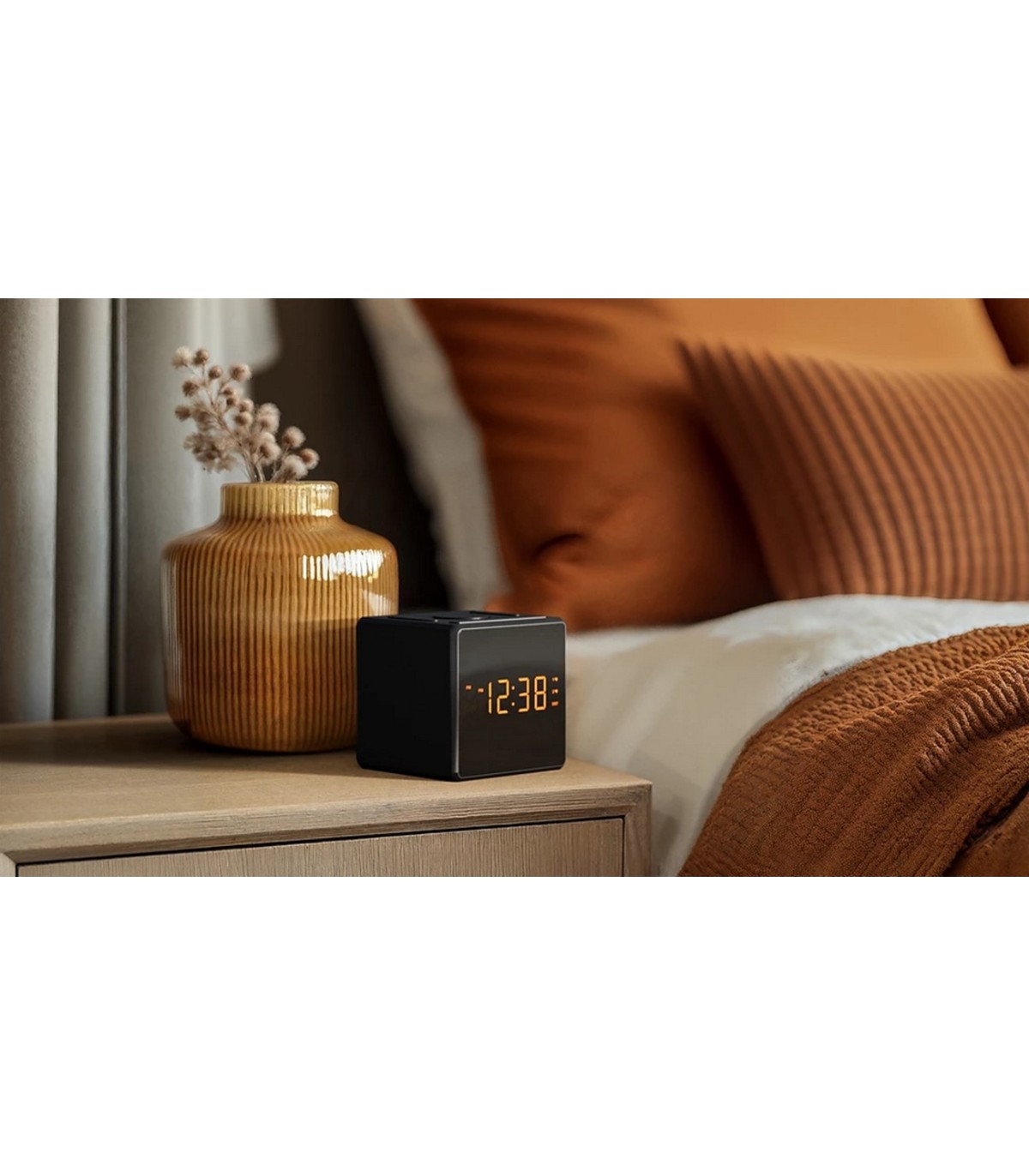* Õrnalt valjenevad kaks äratust, USB-C port telefoni laadimiseks , ühe nupuvajutusega suveaja reguleerimine