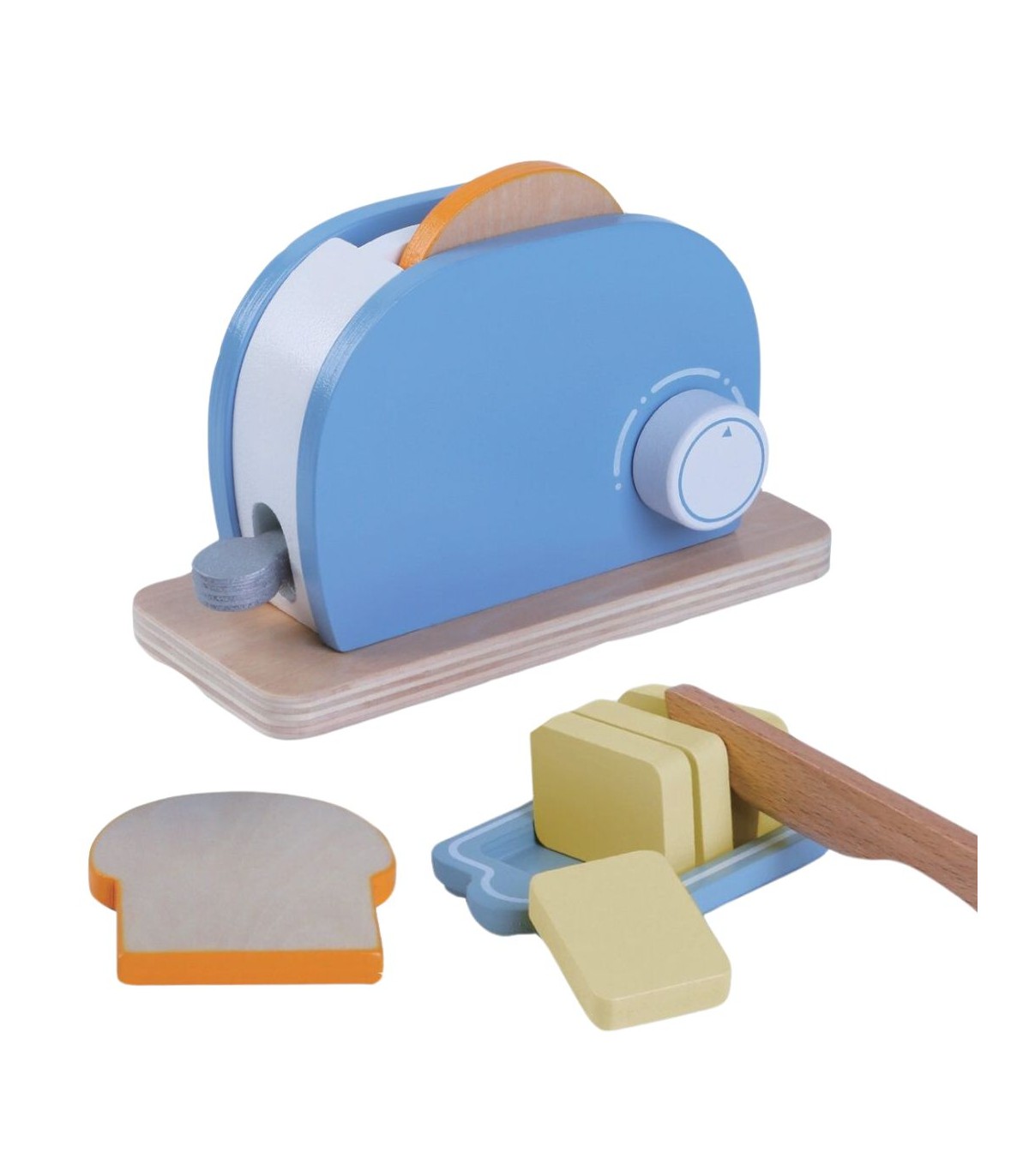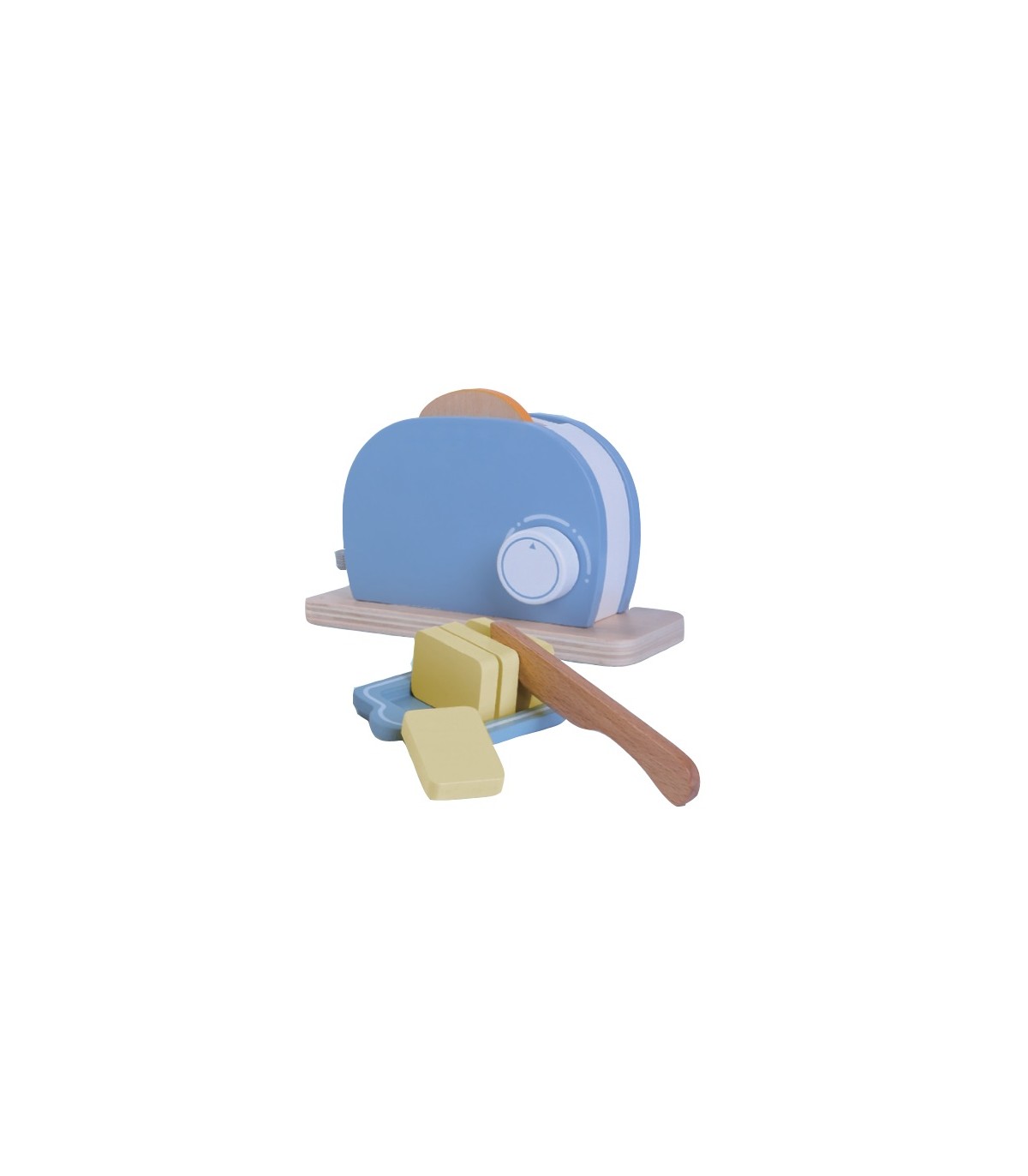 Vahva komplekt, milles on puidust röster, kaks saiaviilu, nuga, 4 tükki võid ning võialus.