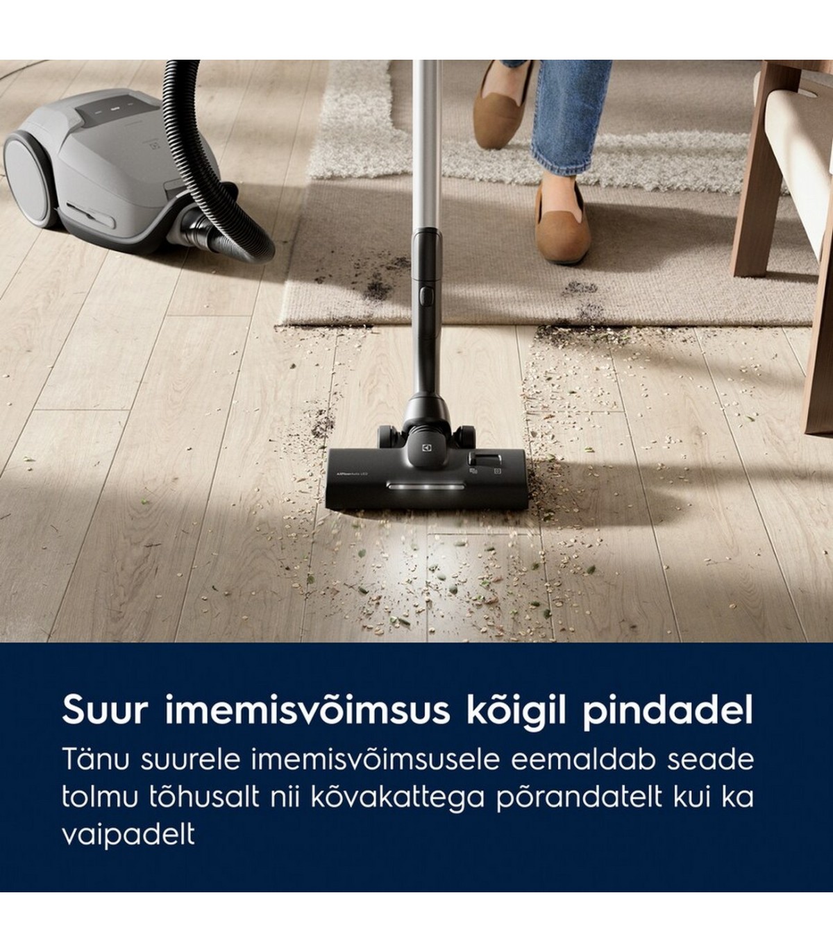 - Automaatrežiim – liigub pingevabalt pindade vahel, lihtne puhastamine AllFloor Auto LED-otsikuga, HEPA-filtreerimissüsteem