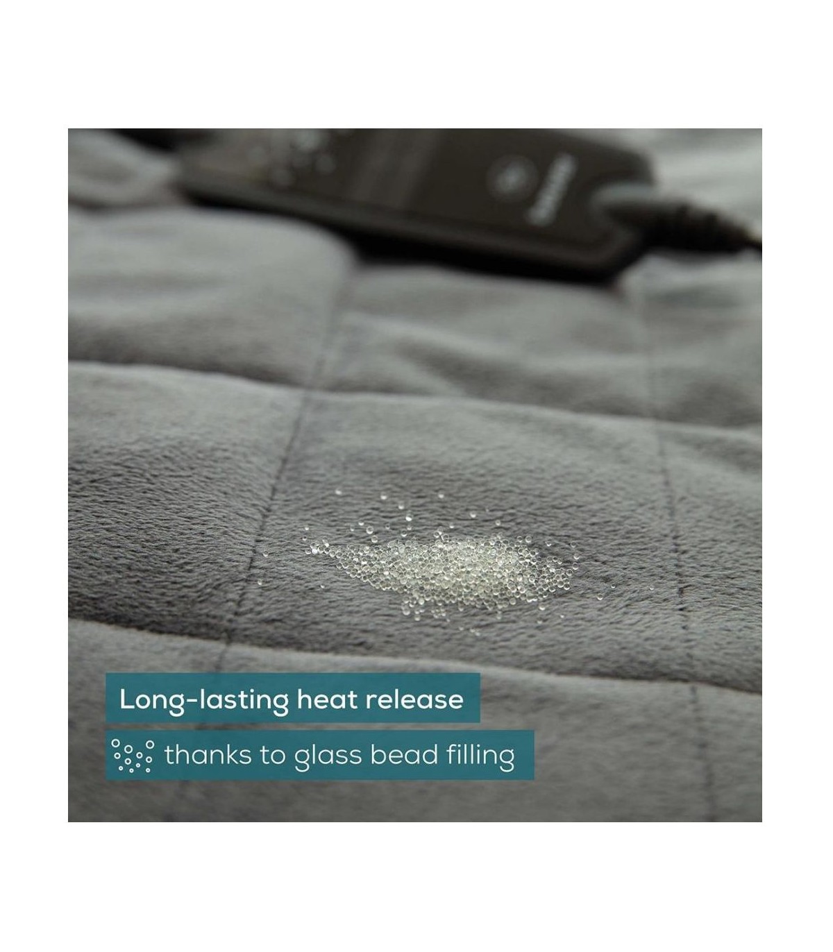 * Fliiskiust soojenduspadi ( 1,5 kg) kohandub tänu klaaspärlitäidisele tihedalt vastu keha ja pakub kauakestvat soojust