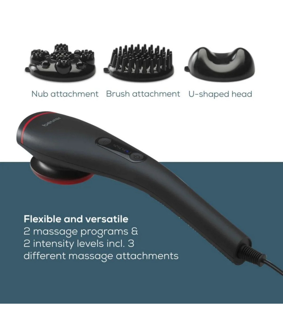 * 2 intensiivsustaset, 2 eelseadistatud massaažiprogrammi
